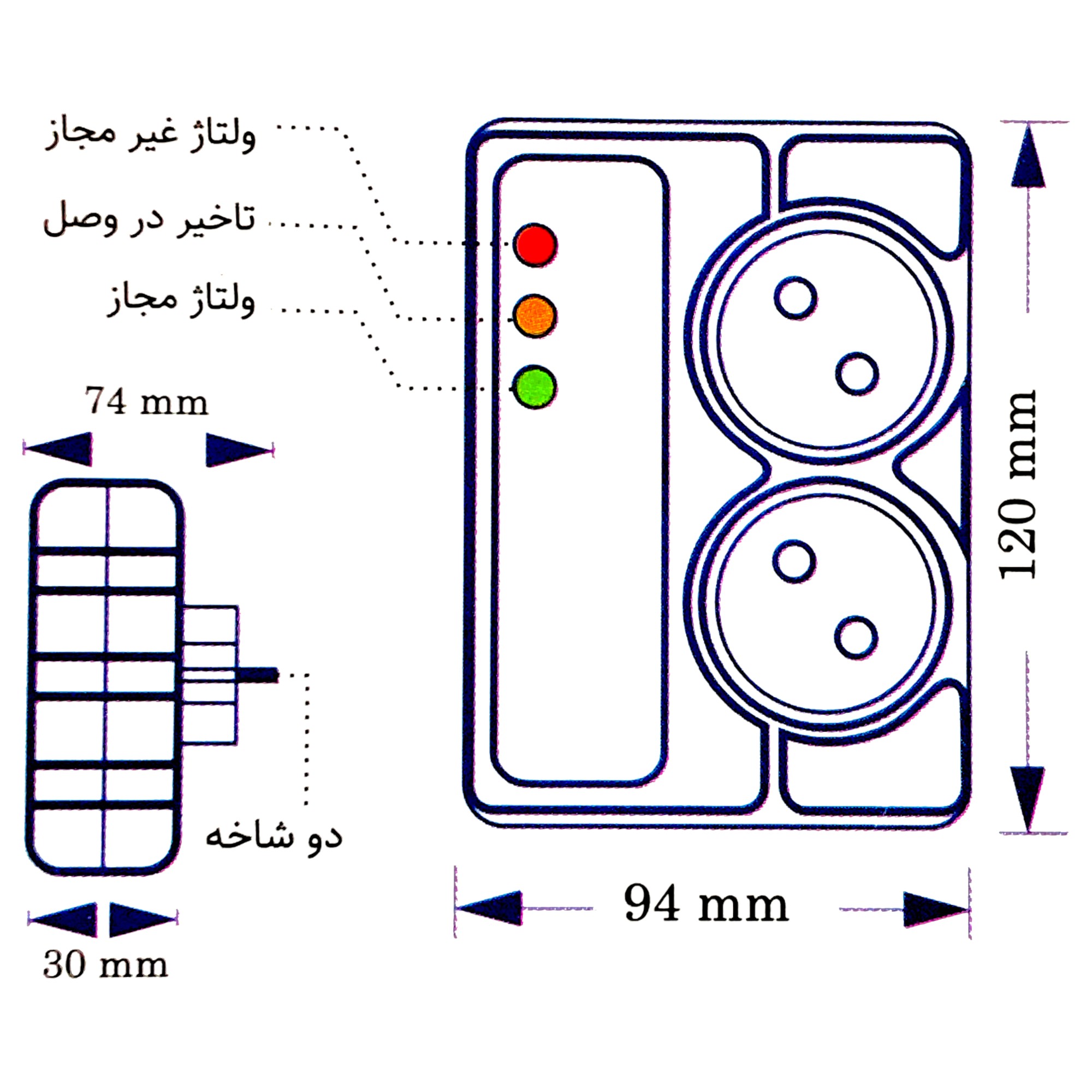 محافظ ولتاژ نماد کنترل 2 خانه فلزی مخصوص یخچال و فریزر 10A-2500VA ضمانت تا 1406/12 استاندارد