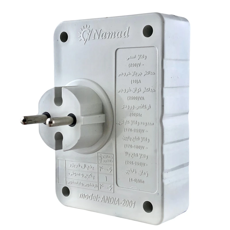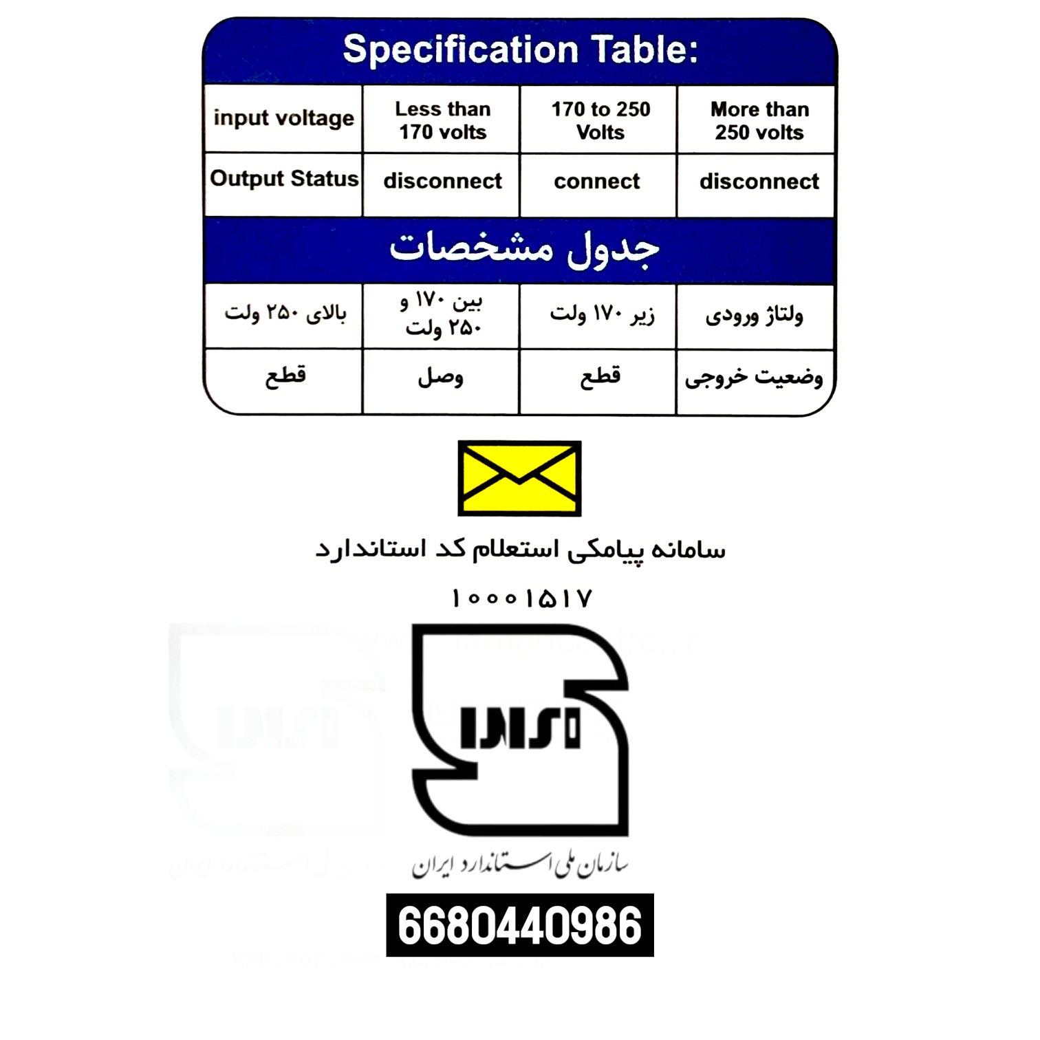 محافظ ولتاژ نماد کنترل مخصوص ماشین لباسشویی و ظرف شویی 16 آمپر 3500 ولت آمپر ارت دار ضمانت تا 1406/12 استاندارد
