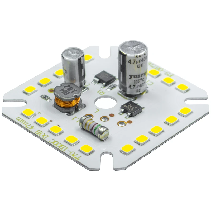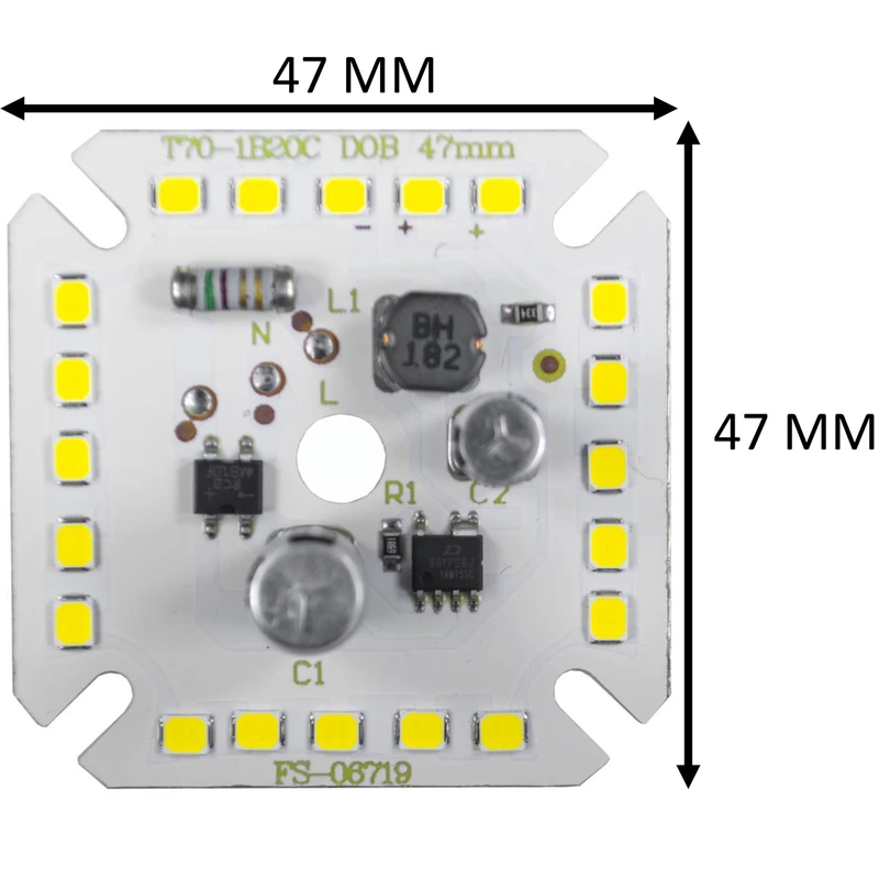 این چیپ مجهز به خازن آنتی شوک میباشد که هم از لرزش و چشمک زدن نور جلوگیری میکند و هم باعث افزایش نور چیپ میشود . این چیپ با برق مستقیم شهری (220 ولت) روشن میشود و در تعمیر یا ساخت لامپ ها و پرژکتور ها و پنل های ال ای دی استفاده میشود . جهت استفاده از این چیپها پیشنهاد میشود با استفاده از خمیر سیلیکون به خنک کننده آلومینیومی (heat sink) مناسب به منظور جلوگیری از افزایش دمای چیپ و کاهش عمر محصول چسبانیده شود . شار نوری این محصول 1800 لومن و طول عمر آن 25000 ساعت میباشد . روی چیپ دو حرف L و N وجود دارد که فاز و نول به آنها متصل میشود .