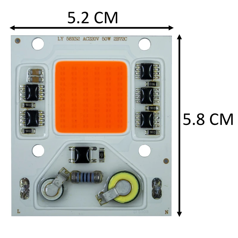 از این چیپ برای ساخت یا تعمیر لامپ و پرژکتور رشد گیاه استفاده میشود . ال ای دی رشد گیاه یک منبع نور مصنوعی است که برای تحریک رشد گیاه با انتشار نور مناسب برای فتوسنتز طراحی شده است . از این چراغ ها در جاهایی استفاده می شود که در آن یا نور طبیعی وجود ندارد یا جایی که نور اضافی برای گیاه لازم باشد مانند گلخانه ها و آپارتمان ها . به عنوان مثال ، در ماه های زمستان که ساعات وجود نور روز ممکن است برای رشد گیاه مورد نظر کافی نباشد ، از چراغ ها برای افزایش زمان دریافت نور گیاهان استفاده می شود . اگر گیاهان به اندازه کافی نور دریافت نکنند ، آنها با سرعت پایین و کم پشت رشد می کنند . این چیپ با برق مستقیم شهری (۲۲۰ ولت) روشن میشود و جهت استفاده از این چیپها پیشنهاد میشود از خنک کننده آلومینیومی (heat sink) مناسب به همراه خمیر سیلیکون جهت انتقال دما به heat sink به منظور جلوگیری از افزایش دمای چیپ و کاهش عمر محصول استفاده شود . شار نوری این محصول 6000 لومن و طول عمر آن 40000 ساعت میباشد . روی چیپ دو حرف L و N وجود دارد که فاز و نول به آنها متصل میشود .