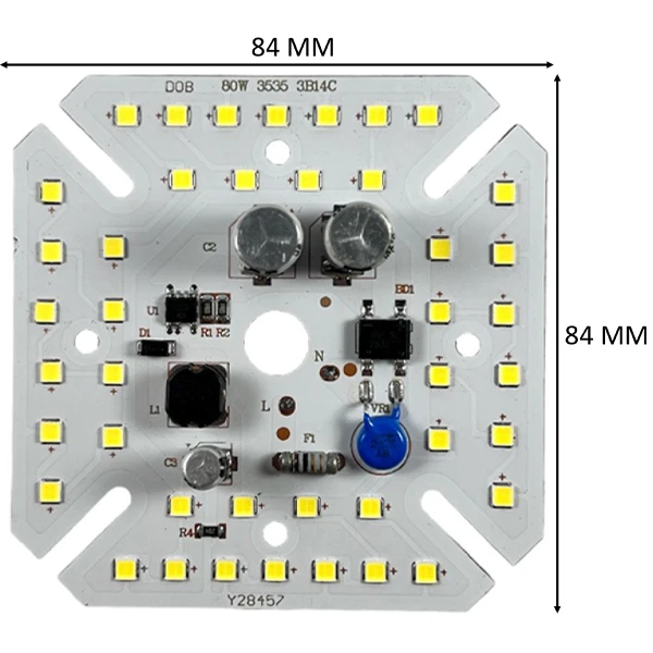 این چیپ مجهز به خازن آنتی شوک میباشد که هم از لرزش و چشمک زدن نور جلوگیری میکند و هم باعث افزایش نور چیپ میشود . این چیپ با برق مستقیم شهری (220 ولت) روشن میشود و در تعمیر یا ساخت لامپ ها و پرژکتور ها و پنل های ال ای دی استفاده میشود . جهت استفاده از این چیپها پیشنهاد میشود با استفاده از خمیر سیلیکون به خنک کننده آلومینیومی (heat sink) مناسب به منظور جلوگیری از افزایش دمای چیپ و کاهش عمر محصول چسبانیده شود . شار نوری این محصول 7200 لومن و طول عمر آن 25000 ساعت میباشد . روی چیپ دو حرف L و N وجود دارد که فاز و نول به آنها متصل میشود .