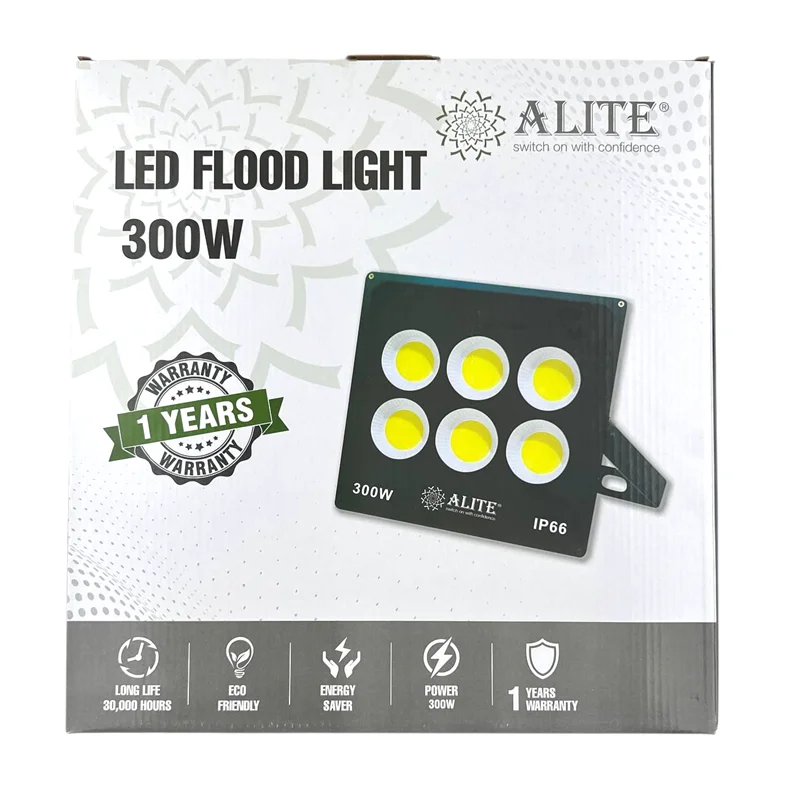 پروژکتور 300 وات از برند alite یکی از مدل های پر کاربرد و اقتصادی در زمیه روشنایی فضاهای باز و صعتی است. این نوع پروژکتور ها معمولا به عنوا نورافکن در فضاهای بیرونی مانند حیاط و محوطه ها و کارگاه ها وسوله ها و باغ ها و ویلاها و تابلوهای تبلیغاتی و .... استفاده میشود.