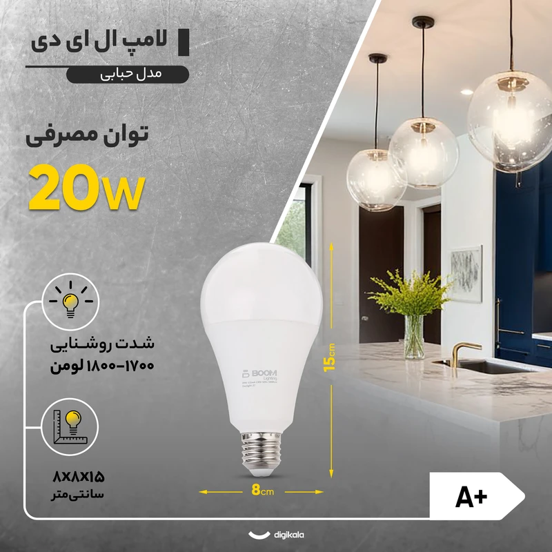 روشنایی بینظیر را با لامپ ال ای دی 20 وات بوم لایتینگ تجربه کنید! با سرپیچ استاندارد E27 و مصرف کم انرژی، این لامپ انتخابی ایدهآل برای خانه و محل کار شماست. از نوردهی پایدار و طول عمر بالا لذت ببرید، و با ضمانت معتبر تا آبان 1405، خریدی مطمئن و اقتصادی داشته باشید. همین حالا تهیه کنید!