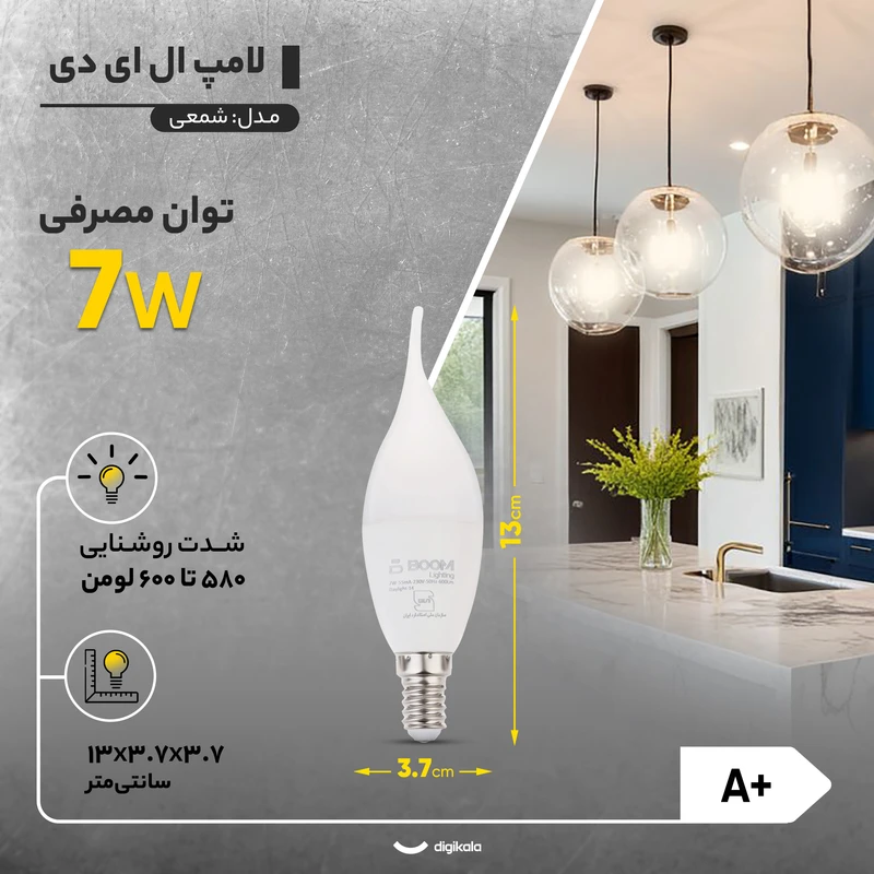 با لامپ ال ای دی 7 وات بوم لایتینگ E14 تجربهای نوین از روشنایی را تجربه کنید! این لامپ با مصرف کم و کارایی بالا، نوری طبیعی و دلپذیر ارائه میدهد. طراحی استاندارد آن نصب را آسان ساخته و با ضمانت تا 1406/01 خیالی آسوده خواهید داشت. همین امروز روشنایی بهینه را انتخاب کنید!