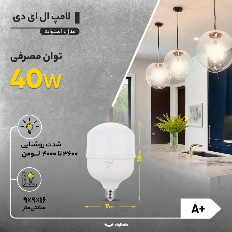 با لامپ الایدی 40 وات بوم لایتینگ، روشنایی بینظیر و صرفهجویی در انرژی را تجربه کنید. طراحی E27 استاندارد، نصب آسان و نوردهی بلندمدت را فراهم میکند. با ضمانت معتبر تا 1405/12، خیالتان از بابت کیفیت راحت باشد. هوشمندانه انتخاب کنید و فضای خود را با نور ملایم و دوستداشتنی متحول کنید!