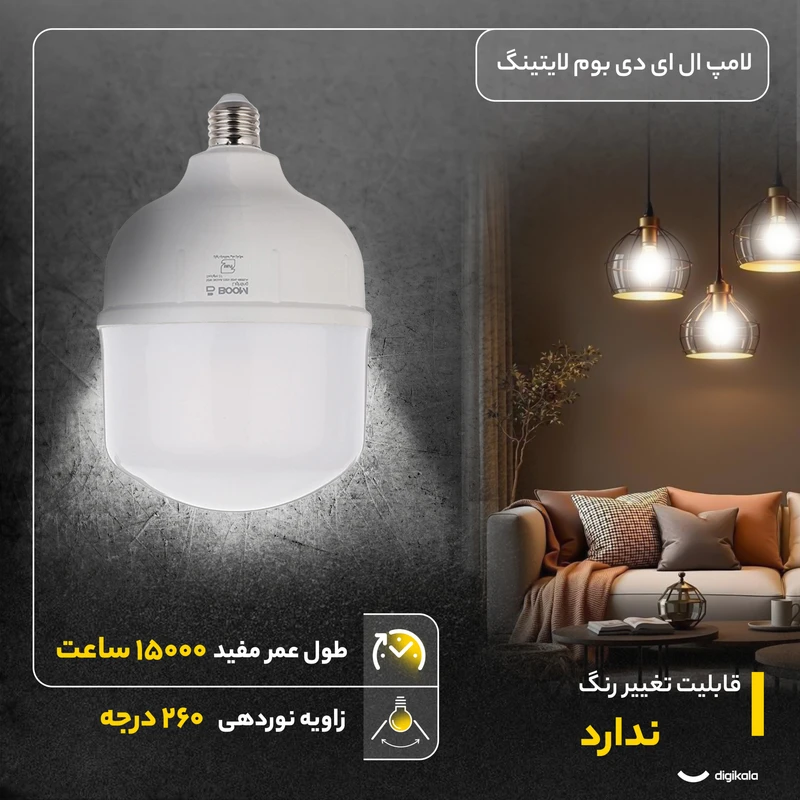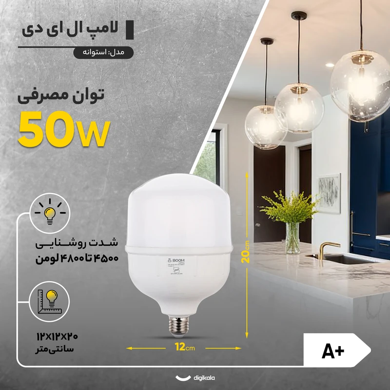"لامپ ال ای دی 50 وات بوم لایتینگ با پایه استاندارد E27، روشنایی قدرتمند و مصرف کم انرژی را به ارمغان میآورد. با ضمانت تا 1406/01، انتخابی مطمئن برای خانه و محل کار شماست. این محصول با طول عمر بالا و کیفیت نور عالی، تجربهای جدید از روشنایی را برای شما فراهم میکند. همین امروز تهیه کنید و از نورانی بودن محیط خود لذت ببرید!"